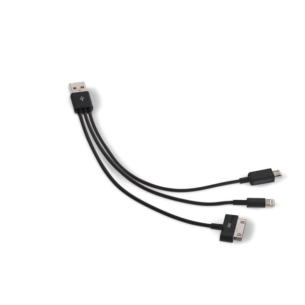 Our promotional "3-Way Combination Lightning, Micro USB, and Mini USB Charging Cable" is very useful and allows everyone to charge their different phones at once. Features micro USB, iPhone 4, 4S, 5, 5S & 6 connectors. Available in black and white. Lightning connector: charging & data transfer function • micro USB & iPhone 4S connectors: charging function only. • ABS & PVC: 23.5 ( l ).