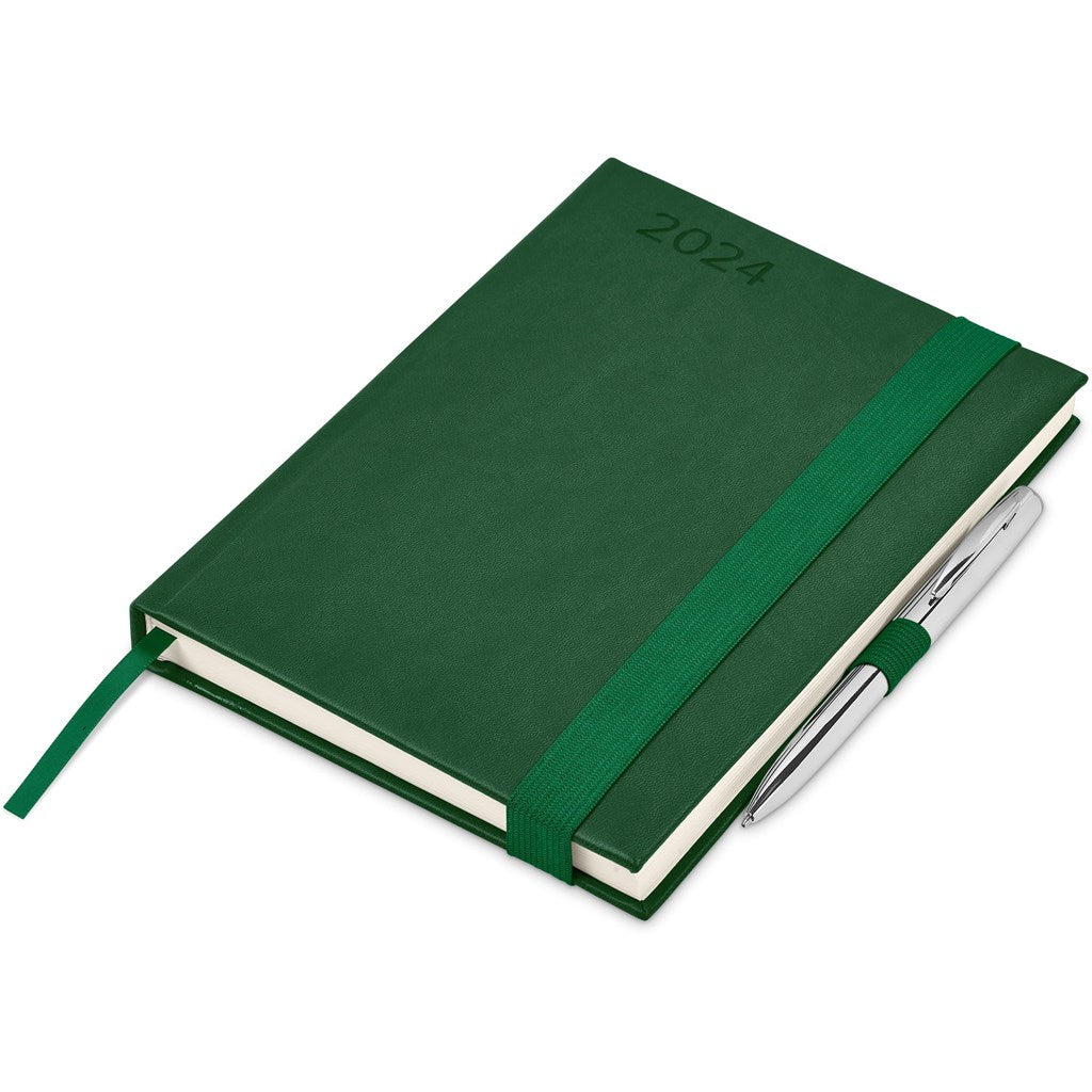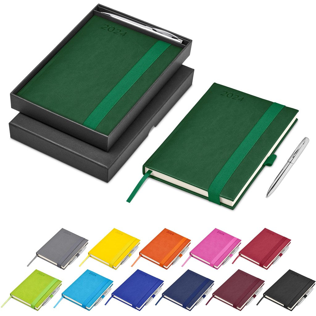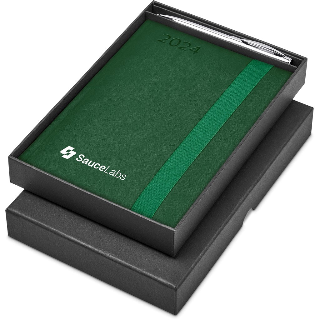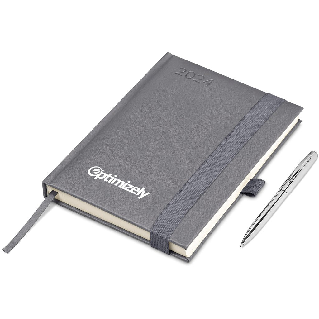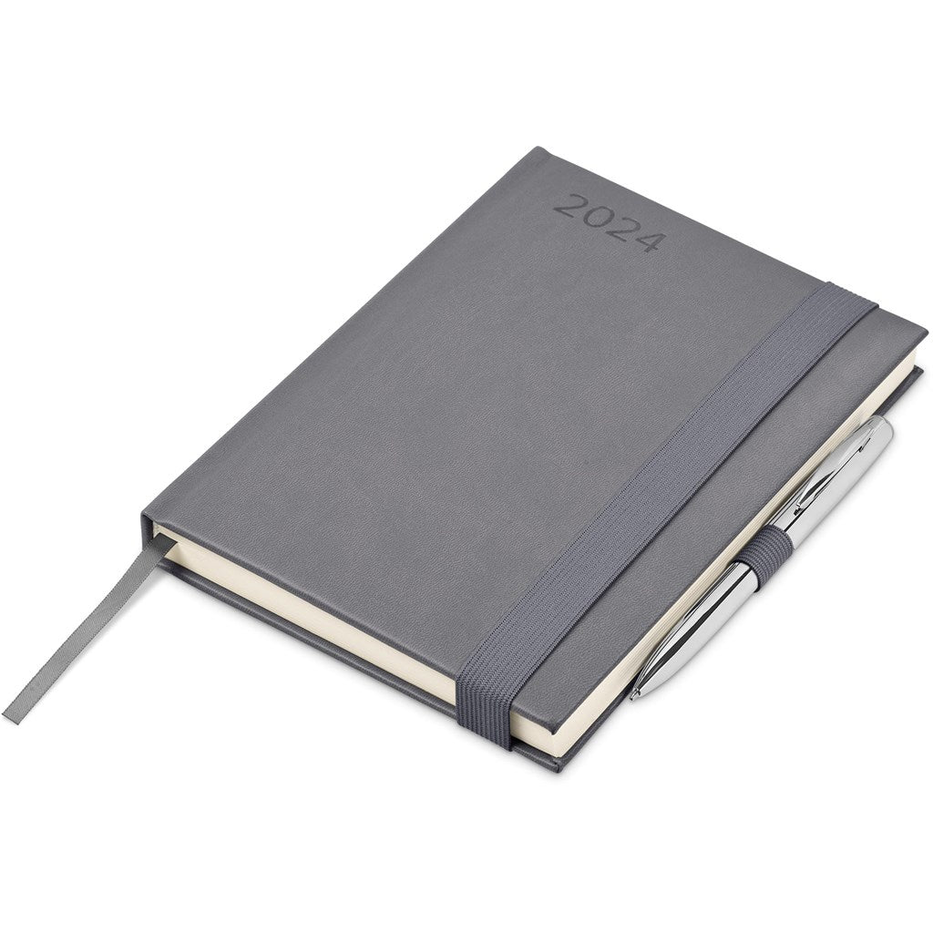 Why not add a ball pen to your diary gift this year? This set includes the Advantage A5 diary and a chromed silver ball pen, packaged together in a matte black, rigid 2-piece gift box.