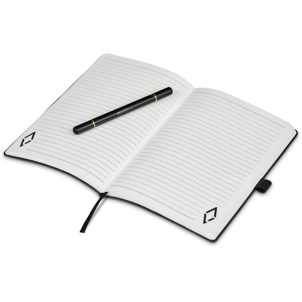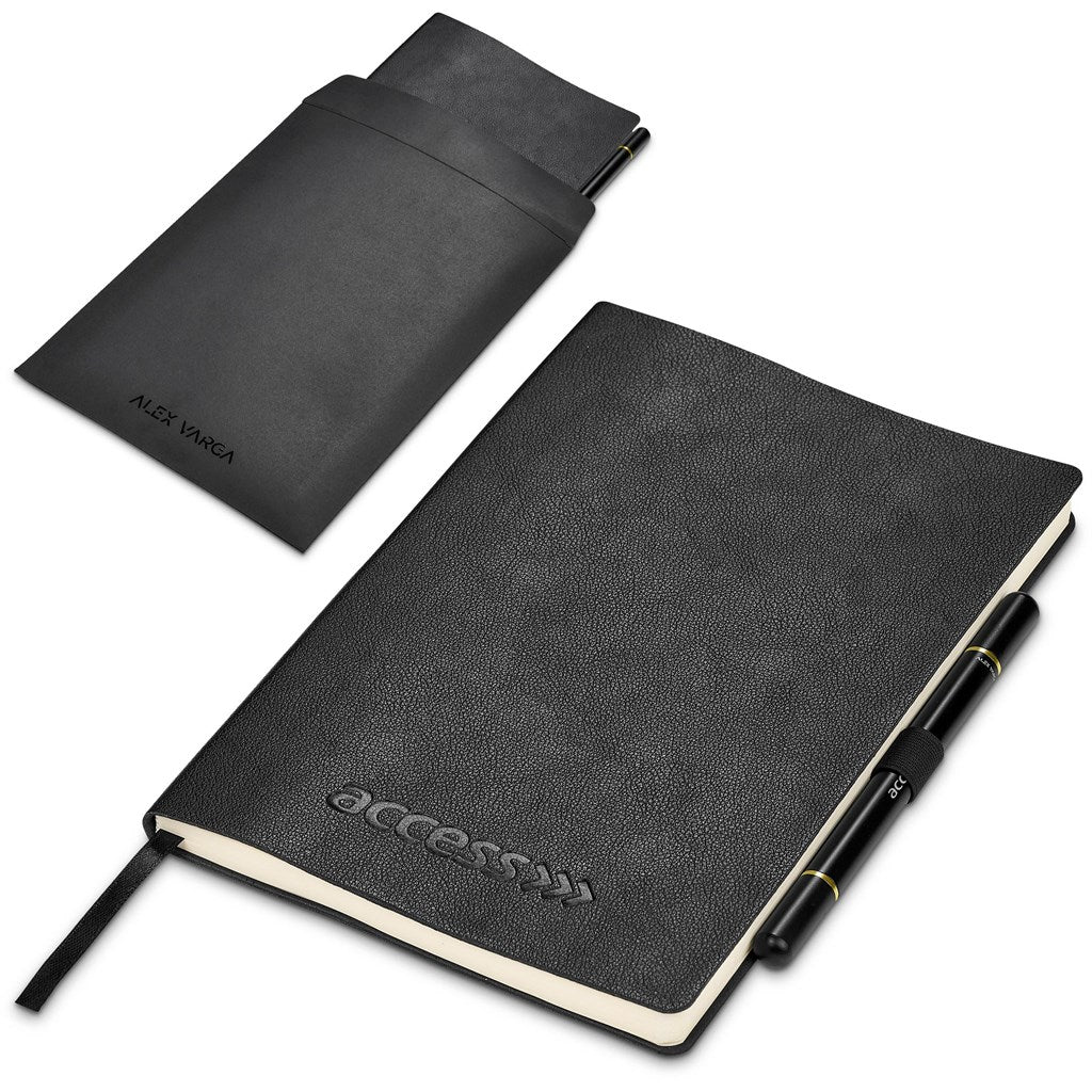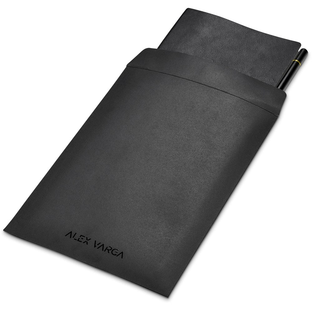 The Alex Varga Moskos Duo Pen is packaged together with the Alex Varga Salinger A5 Soft Cover Notebook in a presentation pouch. The dual function writing instrument has a ball pen on one side and an infinity pencil on the other. The “pencil” nib is made from a metallic alloy, and writes just like a regular pencil, and can be erased like a normal pencil line would be. However, it takes many thousands of uses before becoming blunt. This is a truly useful and unique writing instrument which is sure to delight and intrigue anyone who receives one.