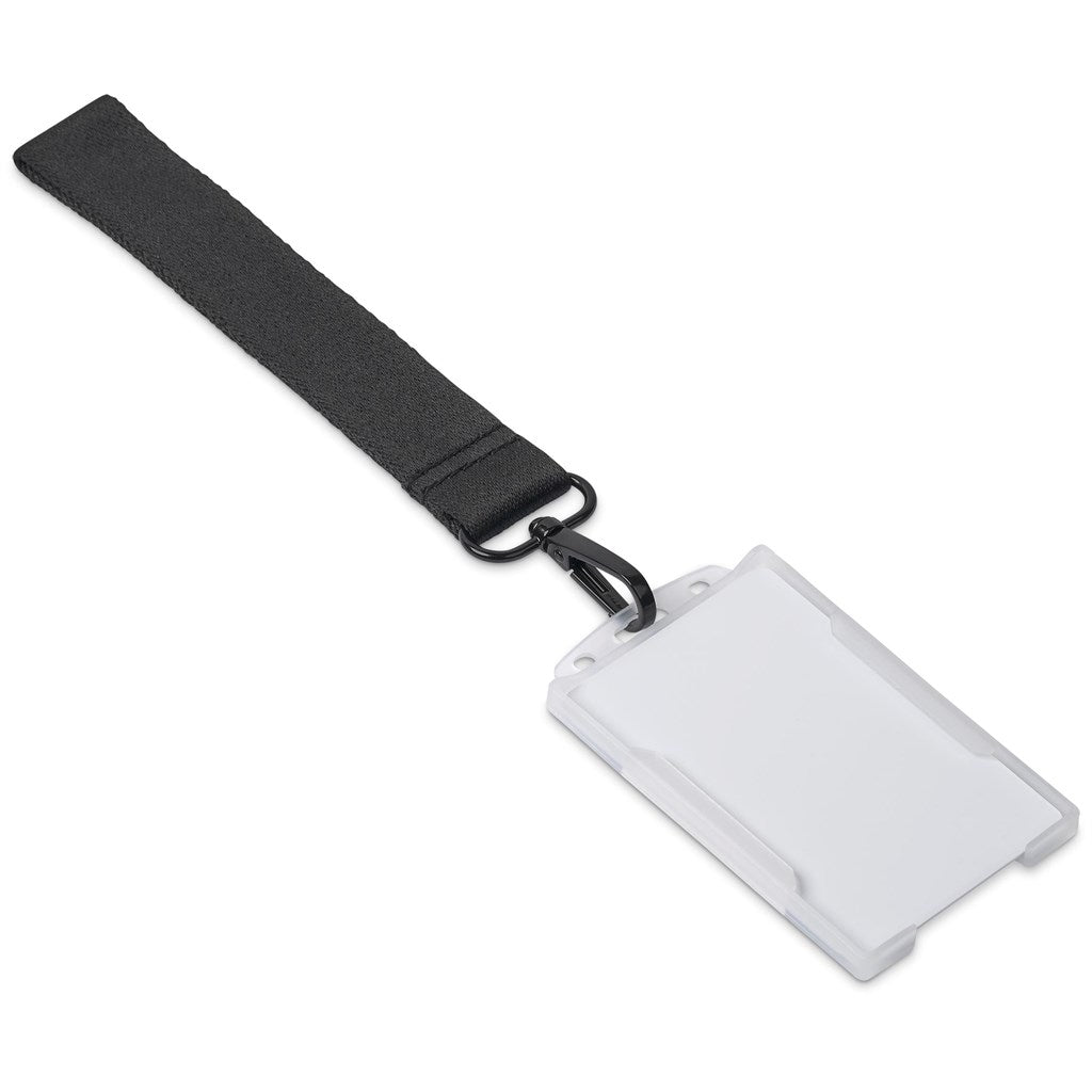 This frosted rigid plastic card holder is designed to hold access cards, and can be attached to the clip of a lanyard.