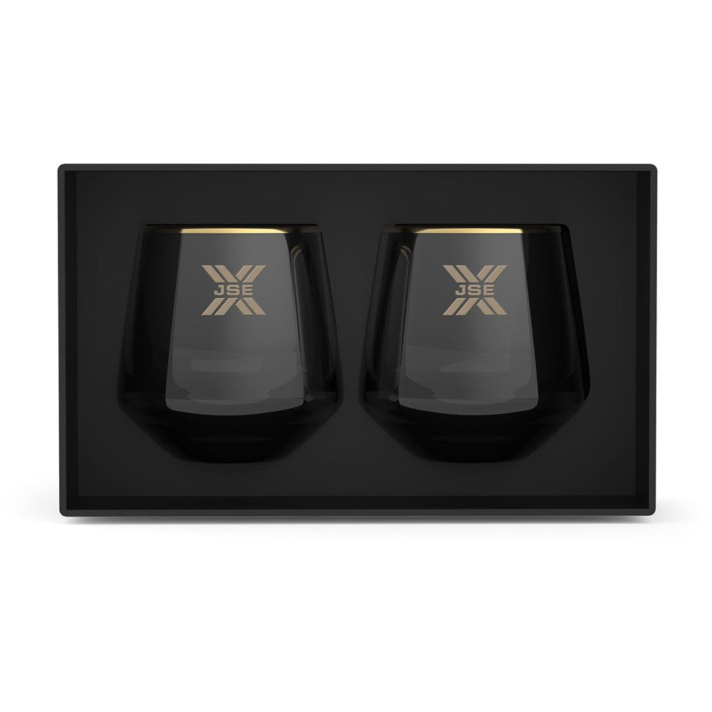 Share a memorable moment over your favourite single malt. These chic whisky/water glasses will complement any home. The Andy Cartwright name is recognised for its premium homeware and corporate gifts, and the ‘Afrique’ Dusk Whiskey Glass Set is no exception. Made from the finest lead-free crystal, this glassware provides higher clarity and brilliance than your average glassware. A smooth-edged, heavy base fits comfortably in your hand. Perfect for showing off your cocktail skills or your collection of bourbon, malt scotch, vodka, and gin and tonic. These all-purpose crystal glasses also allow for fruit juice at breakfast or a swig of iced water throughout your day. Inspired by dusk — the last remnants of twilight vividly etching golden hues overhead a pure black velvet silhouette.