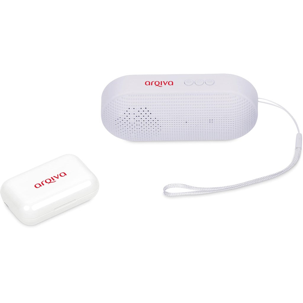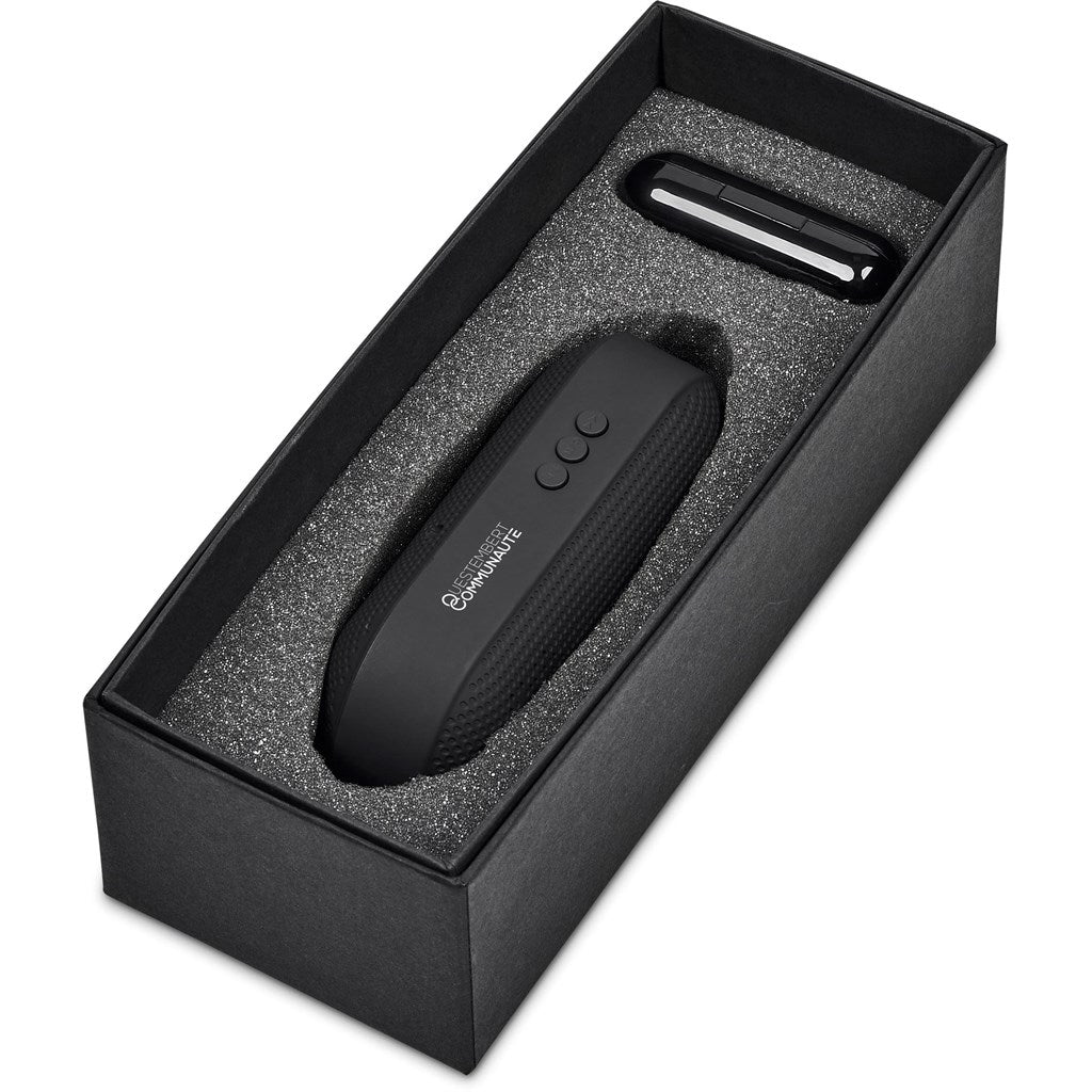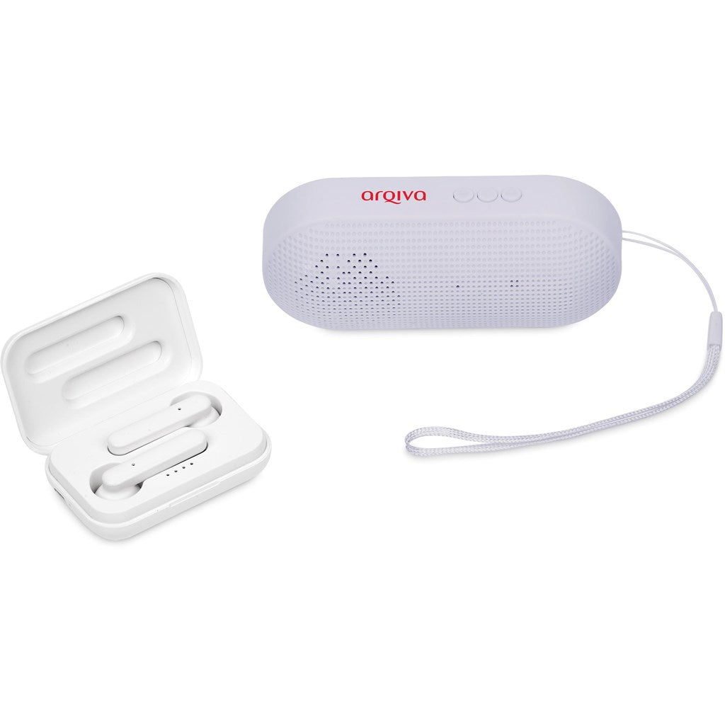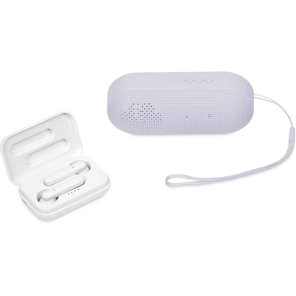 Enjoy your music on your own or with others, with this gift set, which pairs a pair of TWS earbuds with a Bluetooth speaker in a black, 2-piece presentation box.