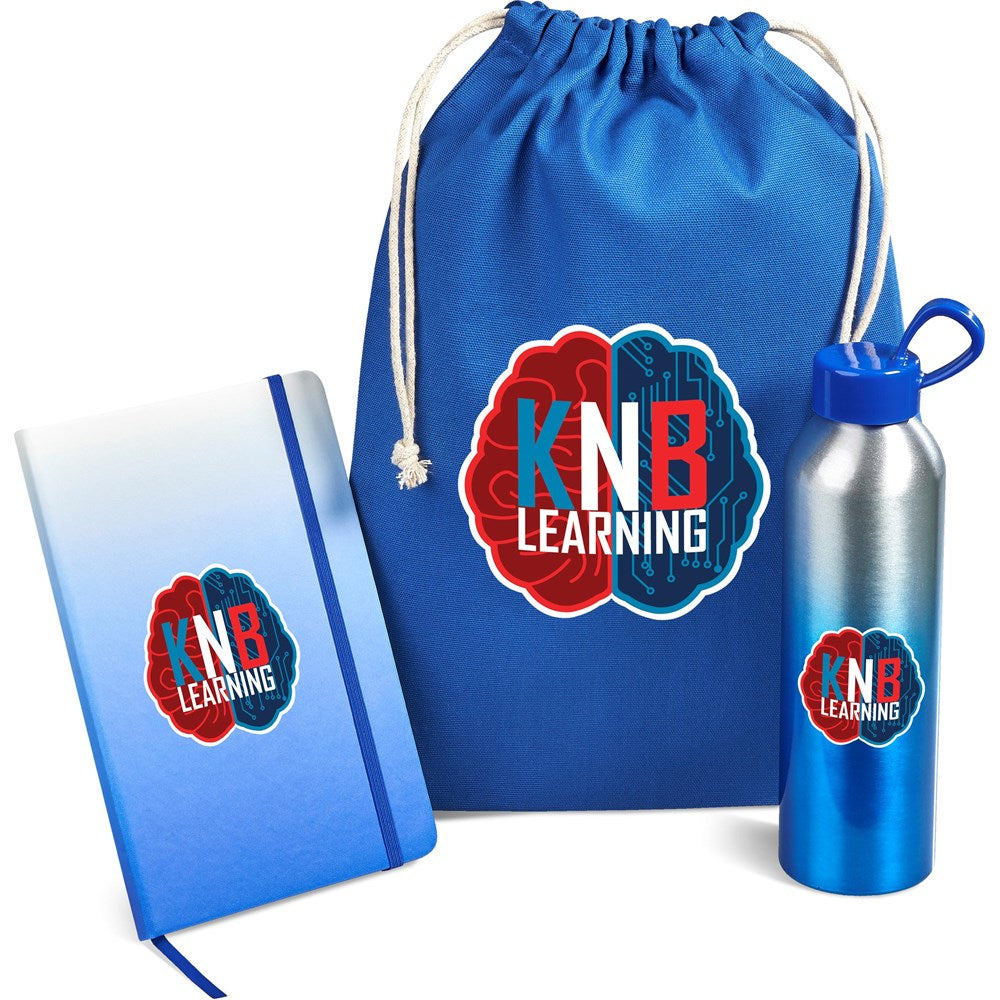 The gentle graduated design of this bottle and notebook is as refreshing as a Summer breeze. This set pairs two everyday essential items in a handy and strong 220gsm drawstring pouch.