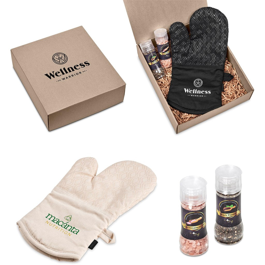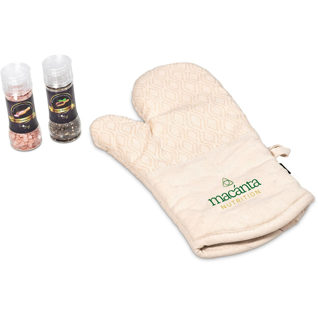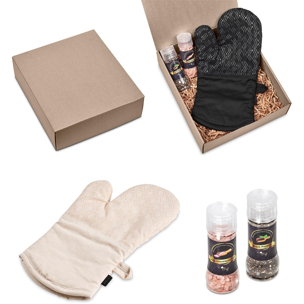 An Experienced and well-known spice company in South Africa, 'The Cheff' has created a perfect blend of herbs and spices to excite and delight your taste buds.  Team these spices with our natural cotton Tanoreen Oven Glove presented in a natural box with filler to create a perfect cooking gift.