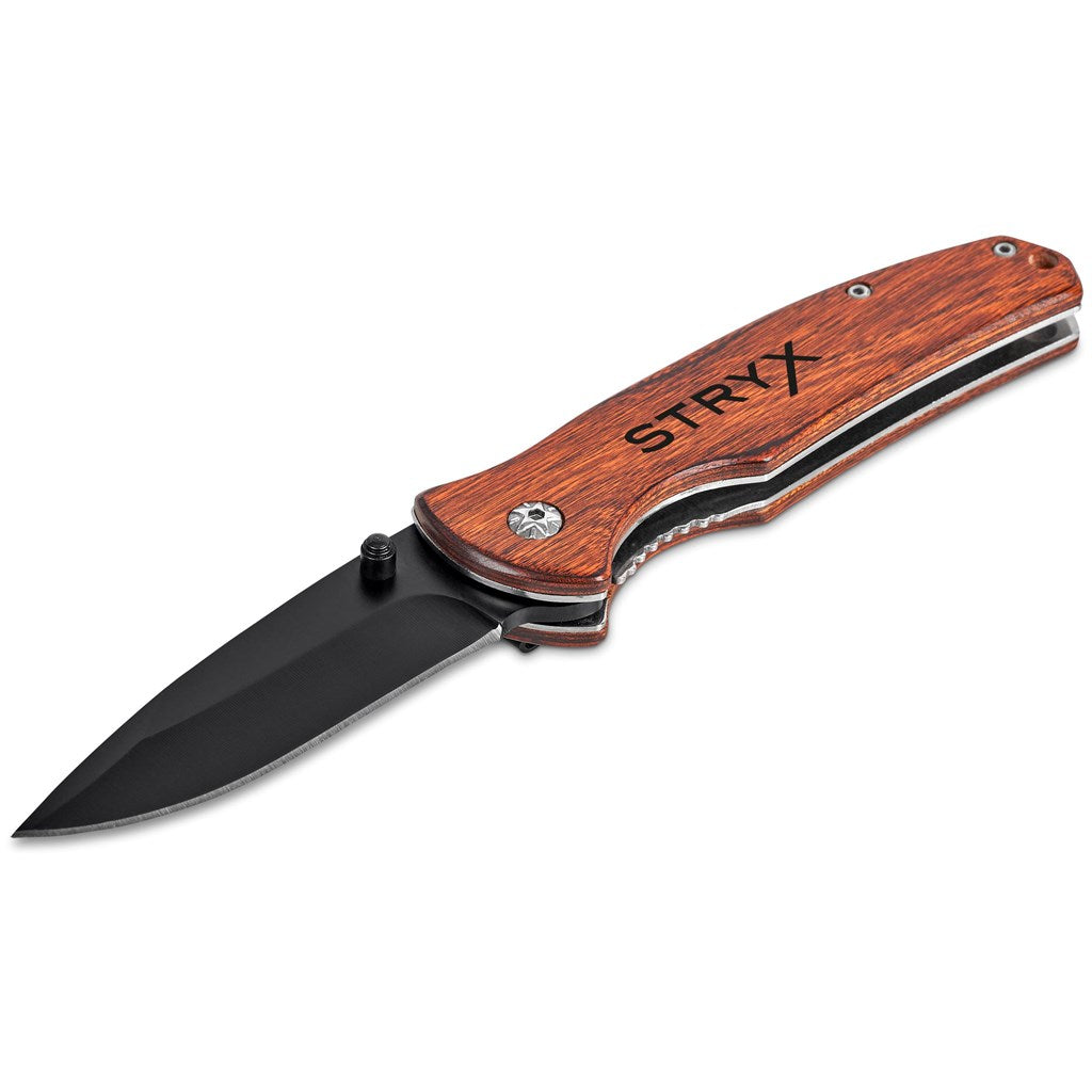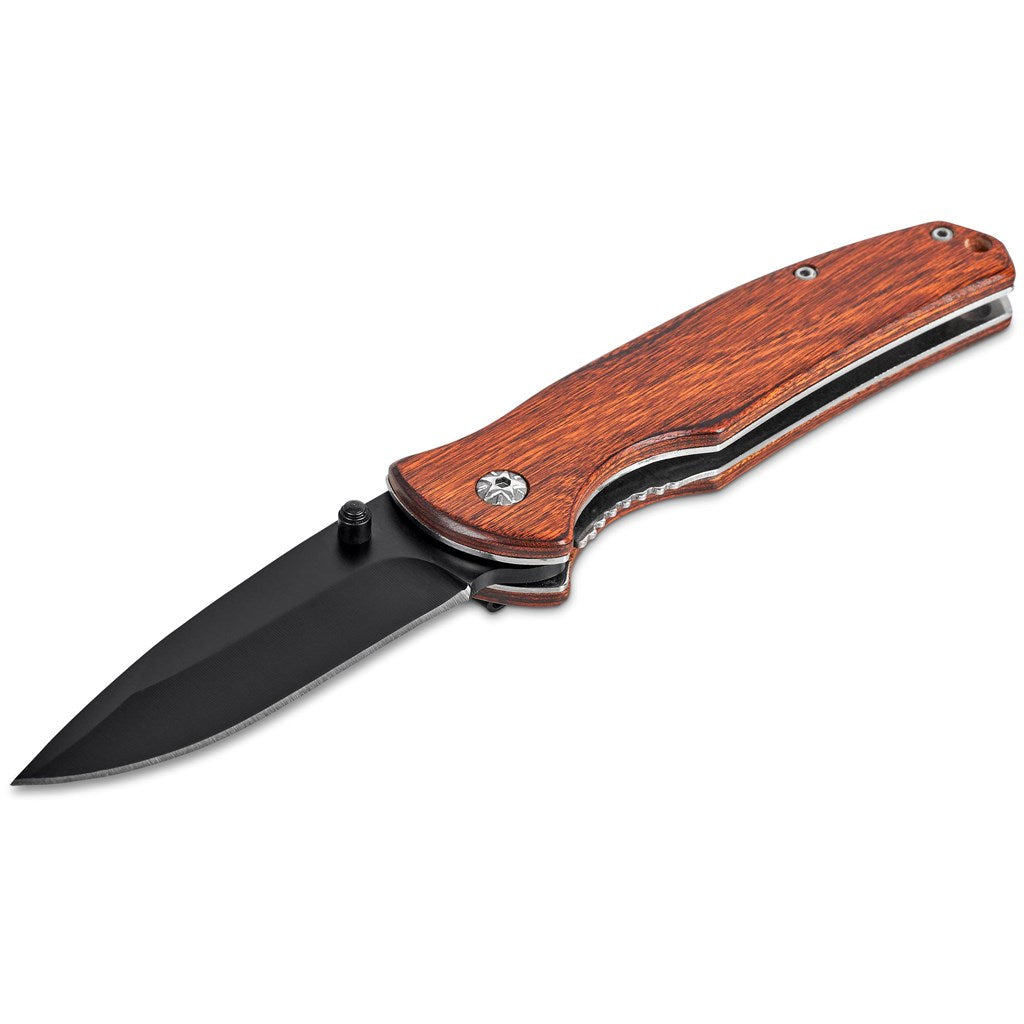 The smooth opening mechanism and sharp blade will make this lock knife a favourite for work, outdoors or for slicing biltong. The coated blade is housed within a tough pakkawood handle.