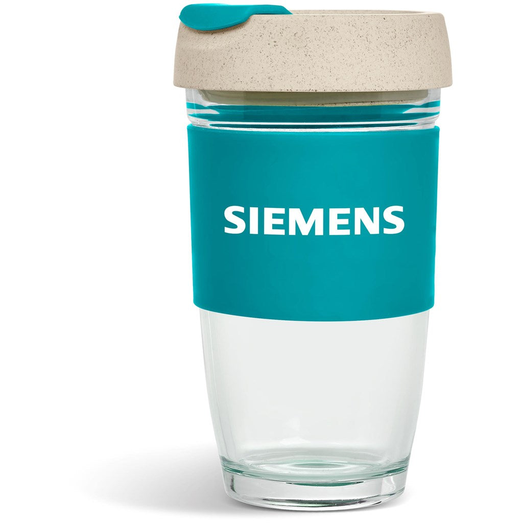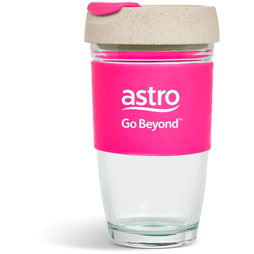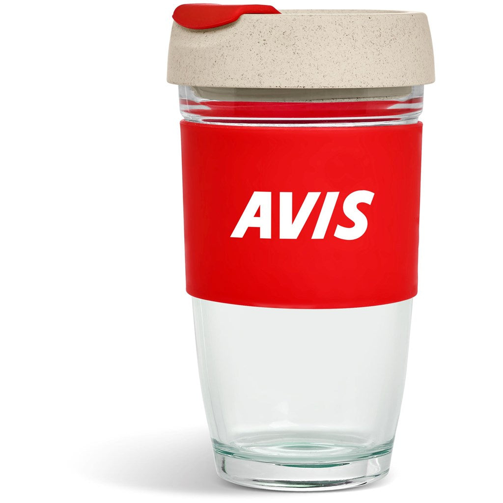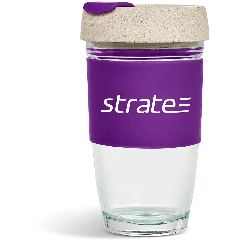 Say no to those single use coffee cups by opting for this reusable 480ml glass coffee tumbler, which has an insulating silicone band and a comfortable sipping lid made from sustainable wheat straw material with a silicone cap.