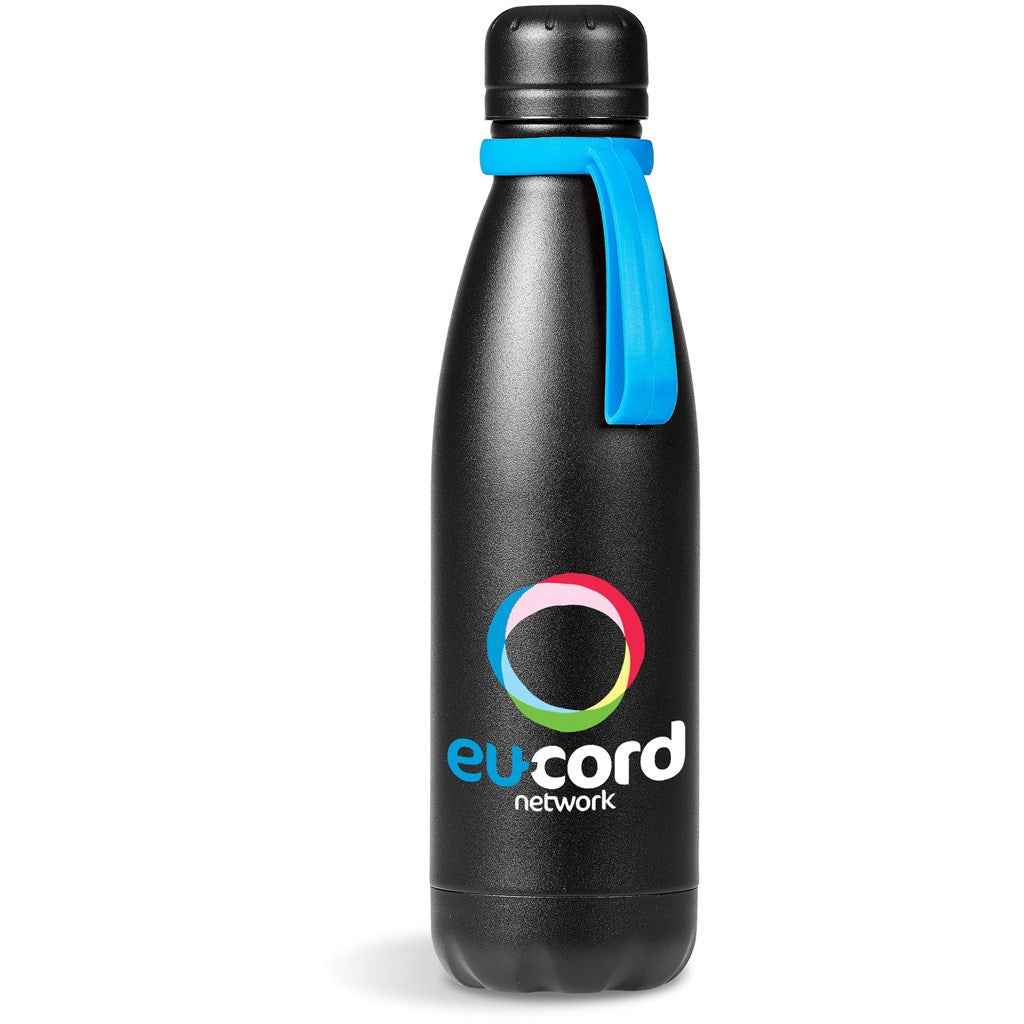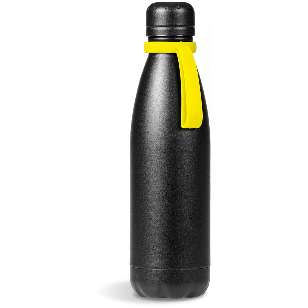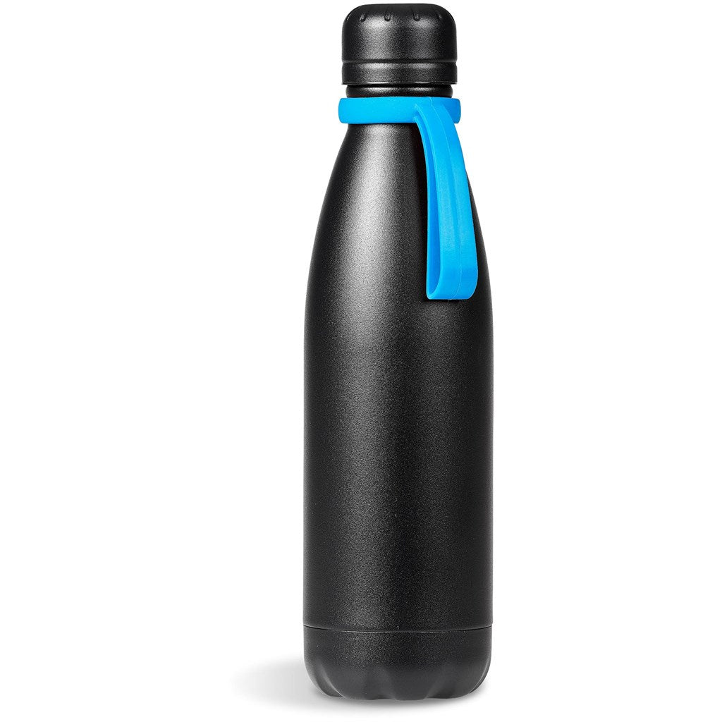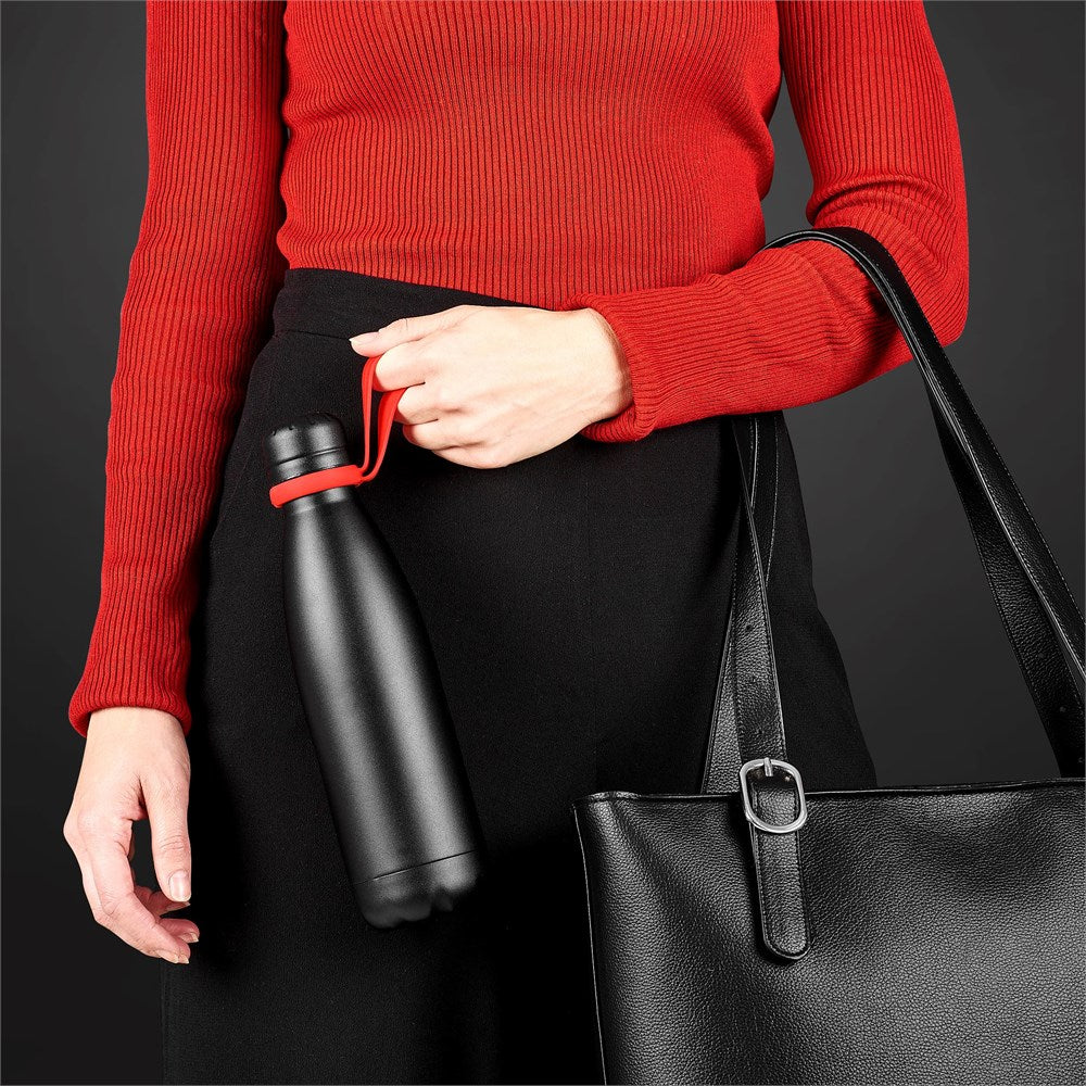 This stylish bottle with a matte, powder-coated finish has a double-wall stainless steel construction, to keep your water cool for hours, even if it’s sitting in the sun. The strong silicone loop makes it easier to carry with you on the go.