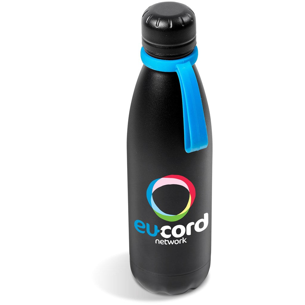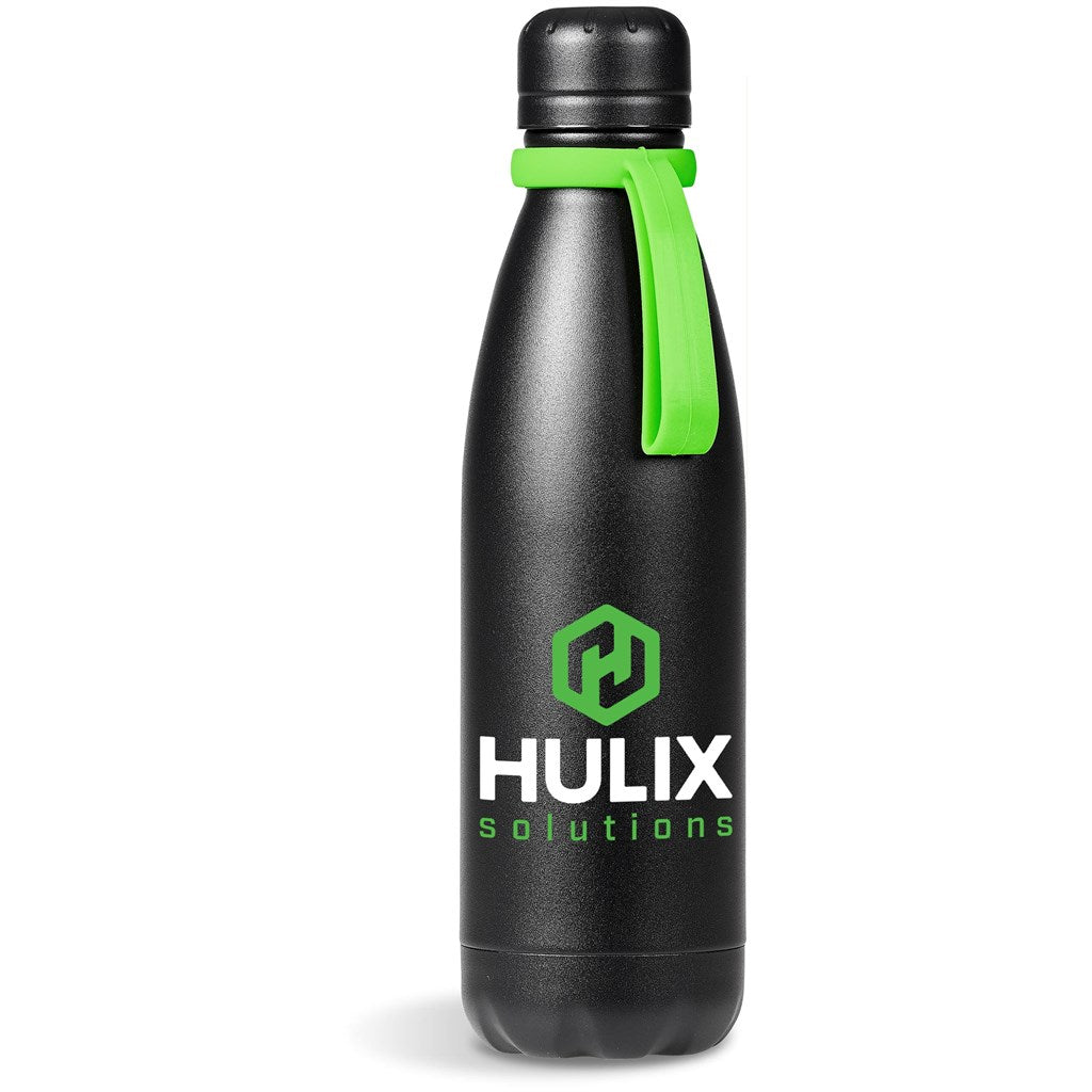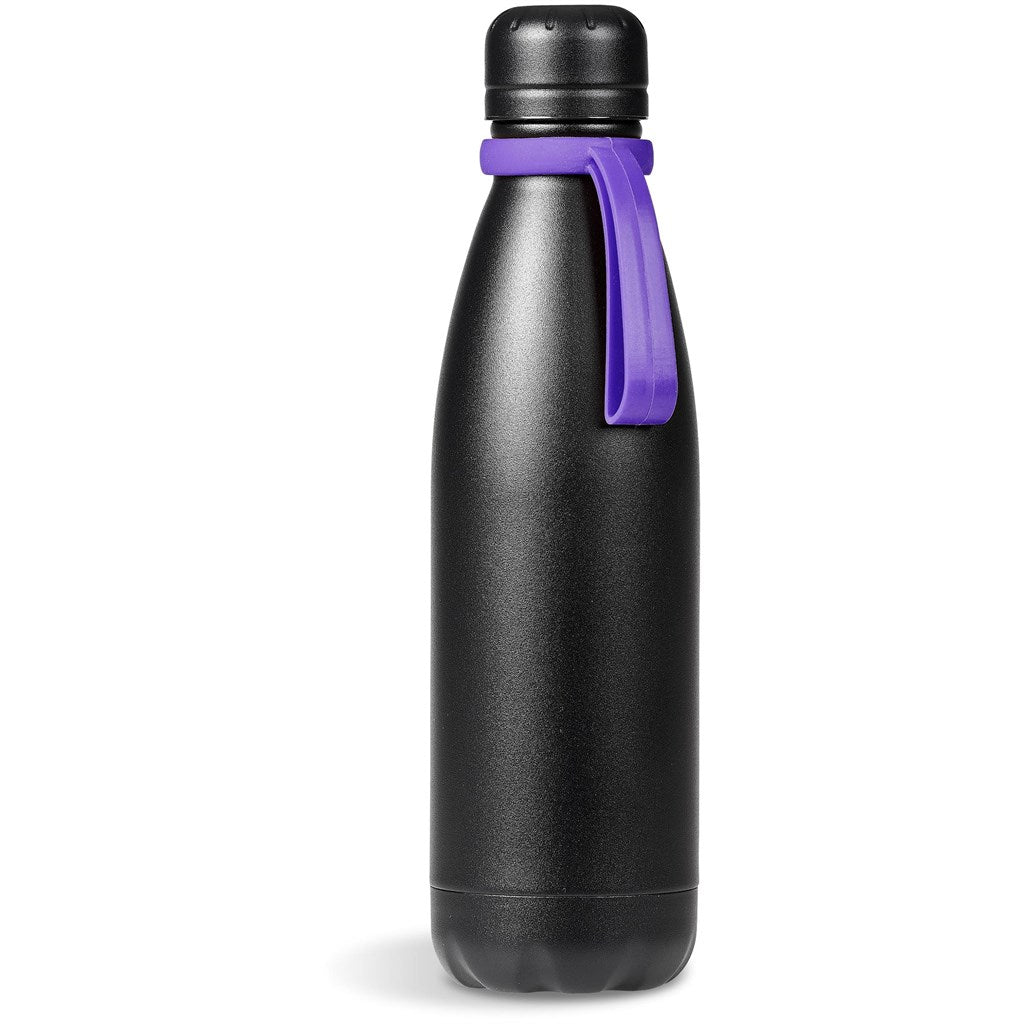 This stylish bottle with a matte, powder-coated finish has a double-wall stainless steel construction, to keep your water cool for hours, even if it’s sitting in the sun. The strong silicone loop makes it easier to carry with you on the go.