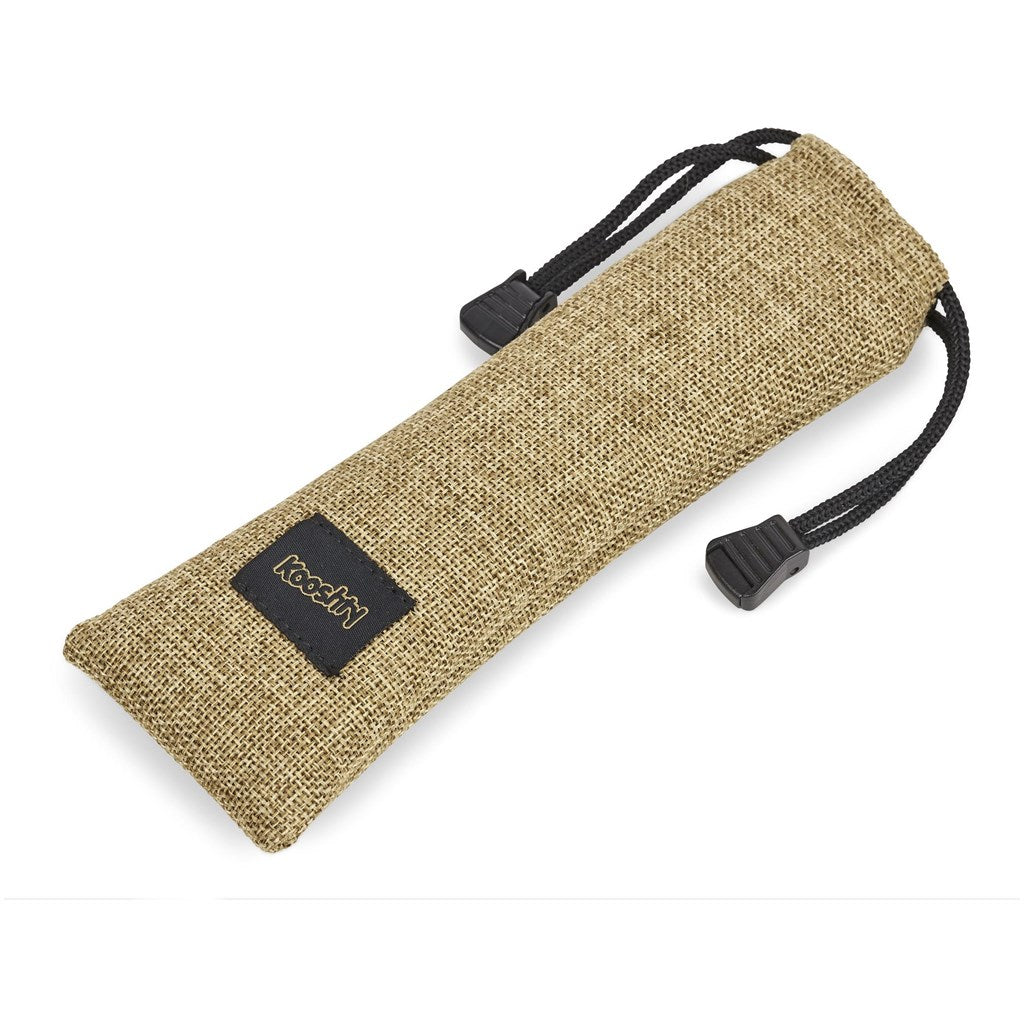 - stainless steel knife, fork and spoon in a jute-look neoprene drawstring pouch.
