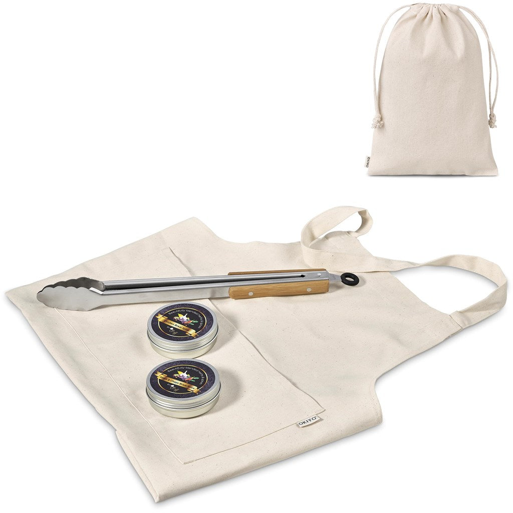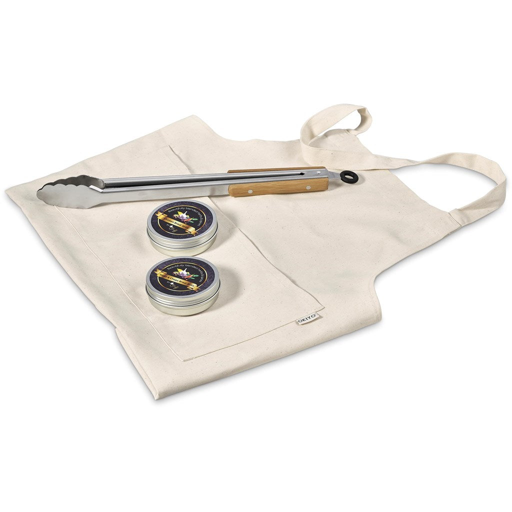An Experienced and well-known spice company in South Africa, 'The Cheff' has created a perfect blend of herbs and spices to excite and delight your taste buds.  Add to chicken or meat, to bring out an authentic South African braai flavour. Team these spices with our natural cotton Gohan apron and Braai Tongs presented in a natural cotton pouch to create a perfect braai master gift.