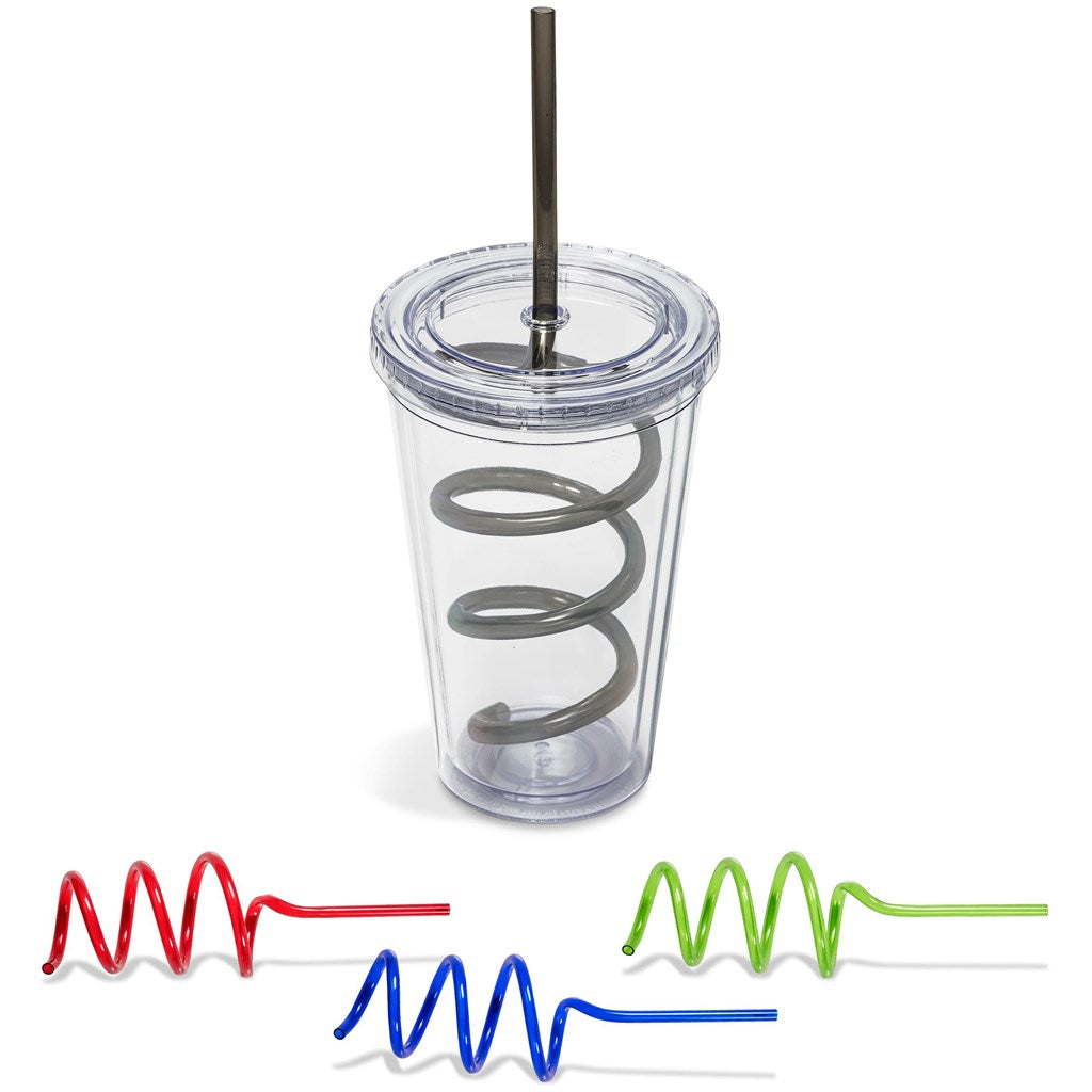 Brighten up your day with this fun tumbler! The spiraling twisty straw is designed to keep you cheerful throughout the year while the double-wall design keeps your drink cool for longer and reduces condensation on the outside of the tumbler.