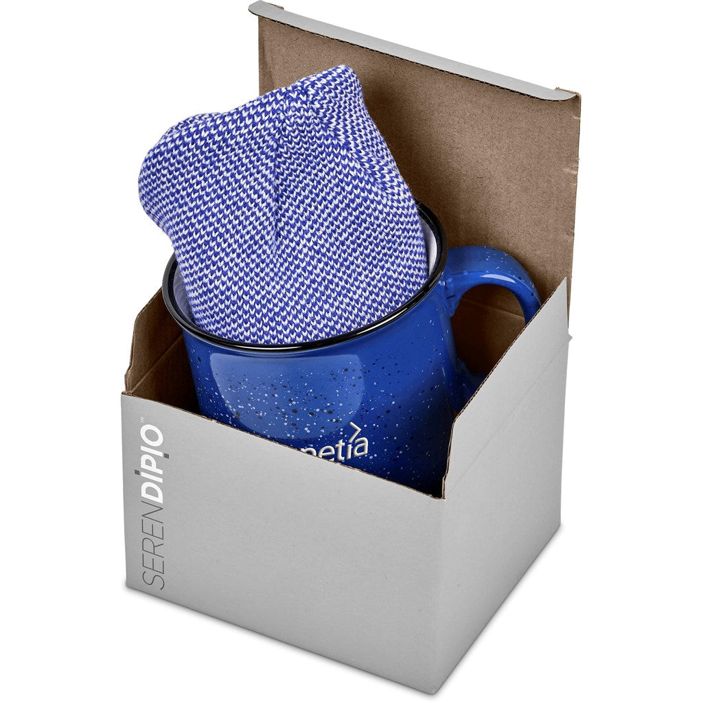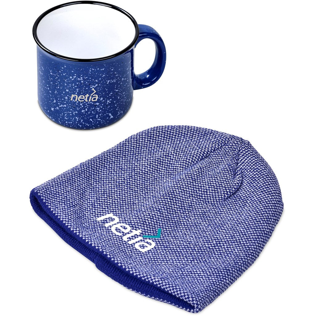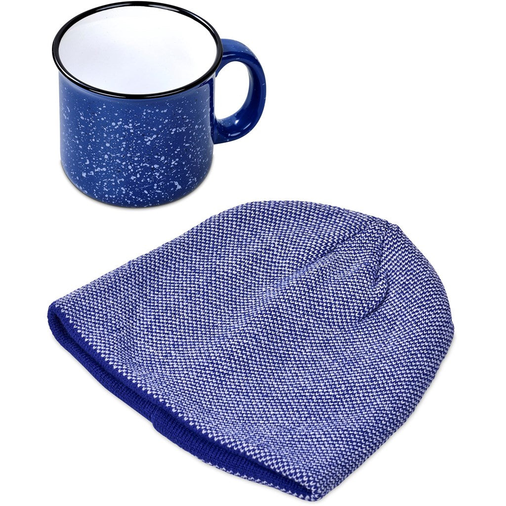 A warm beanie is combined with a generously sized coffee mug to create a set for those cold Winter days.