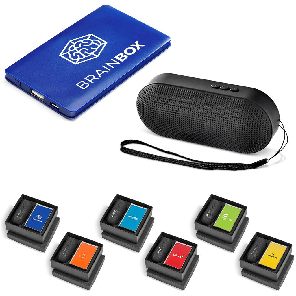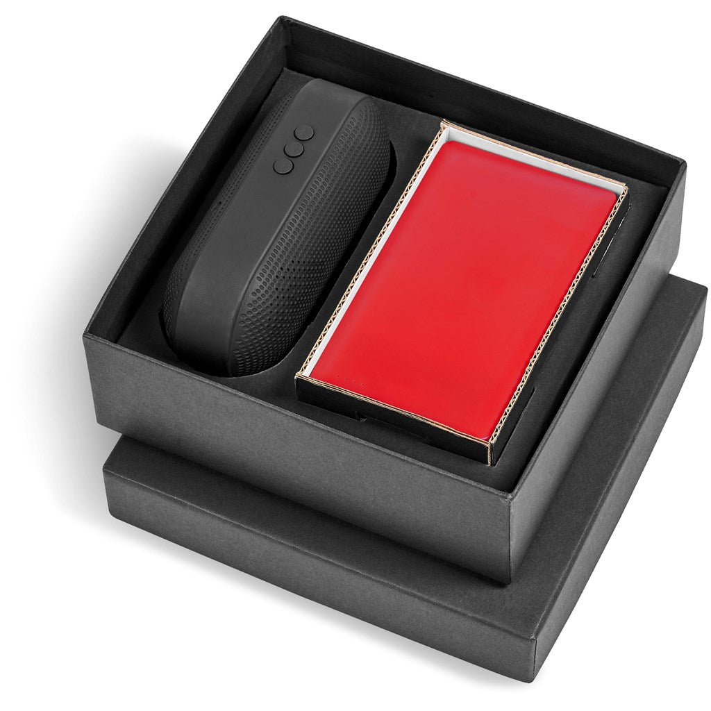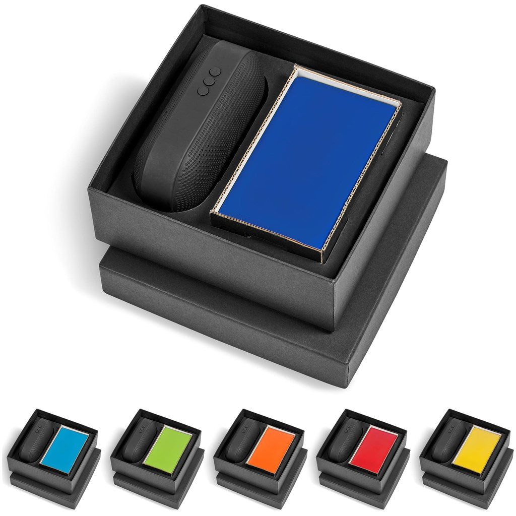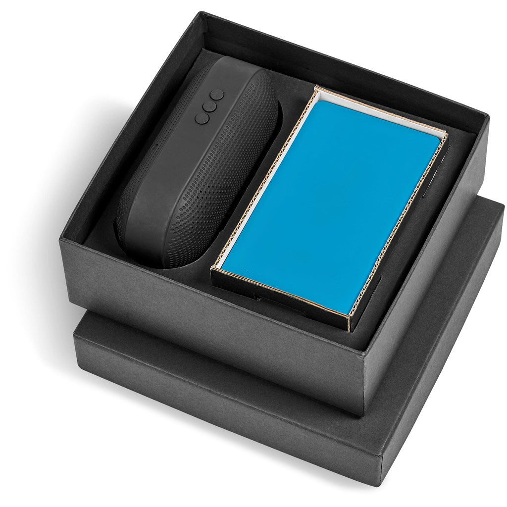 This neatly packaged gift set brings you a black Bluetooth speaker combined with a 4000mAh power bank in a choice of colours.