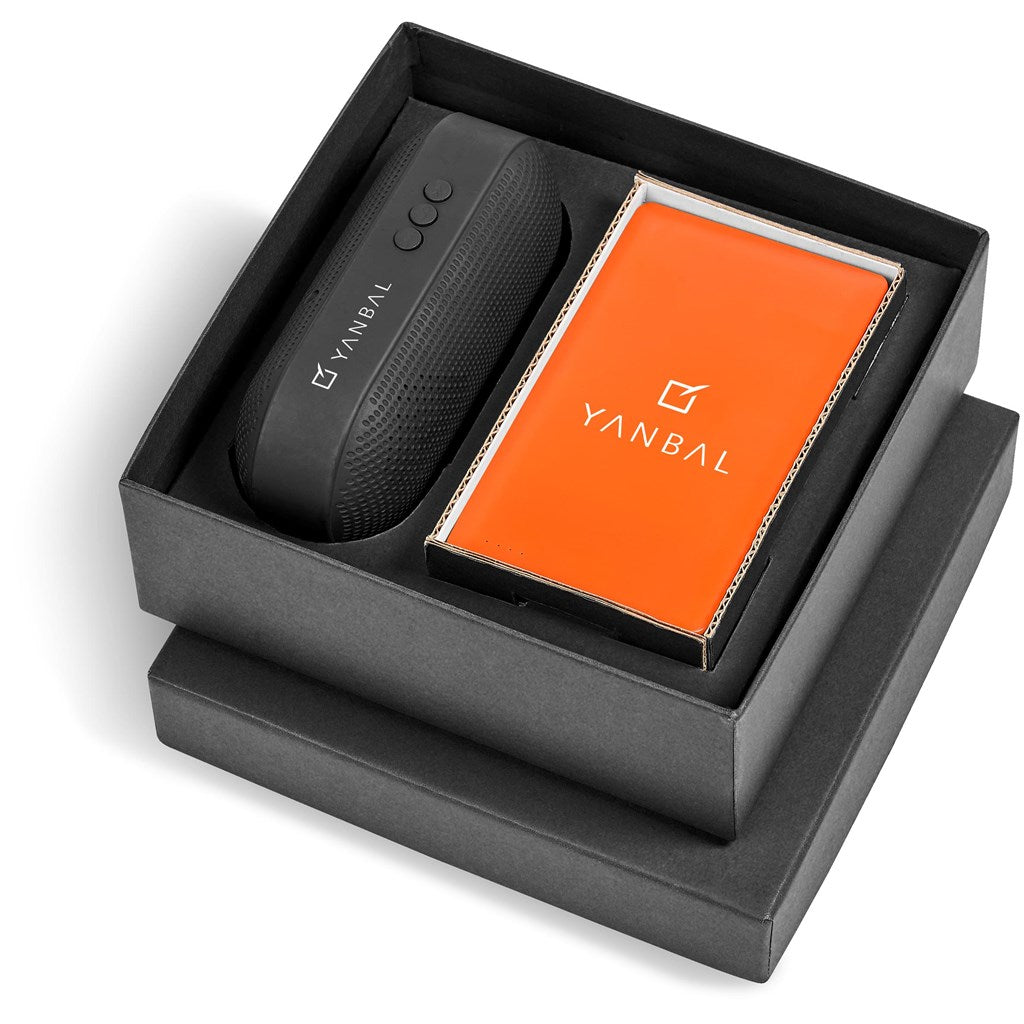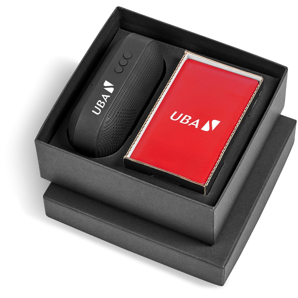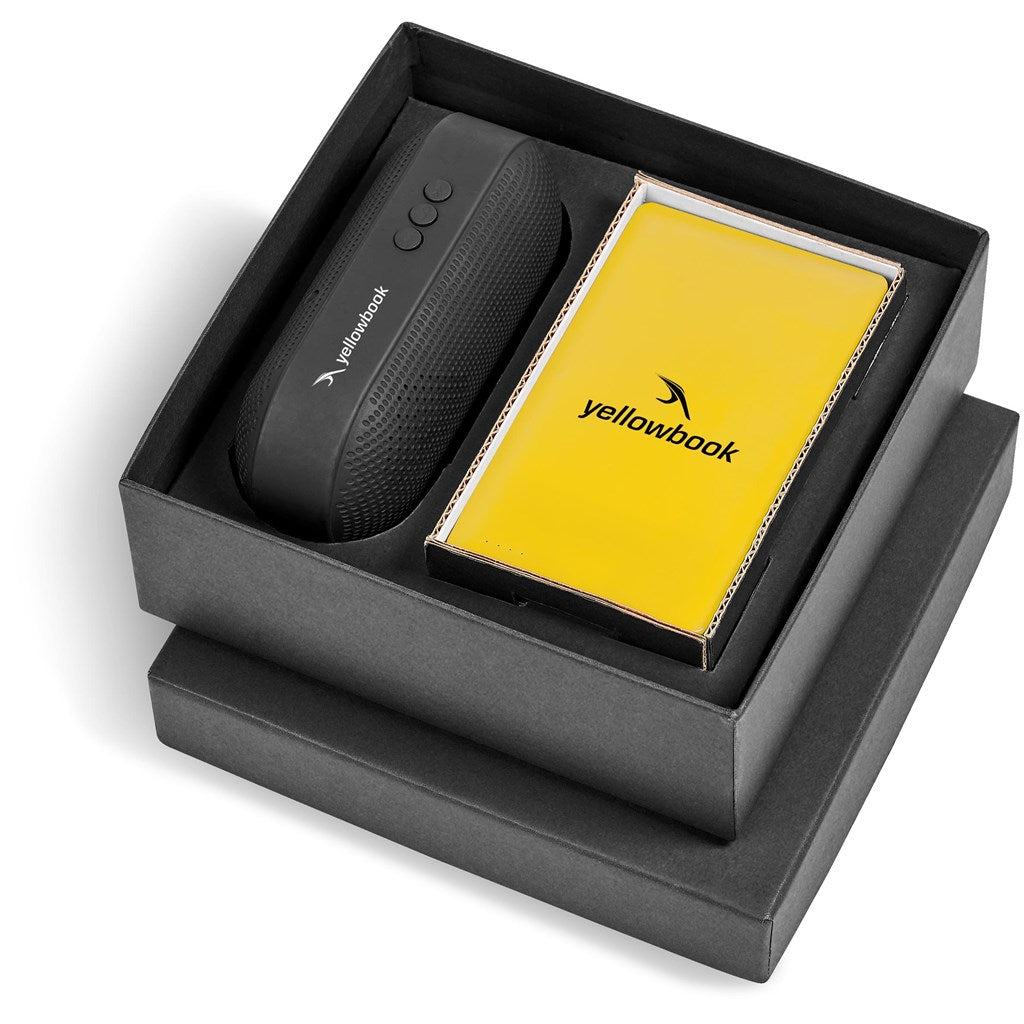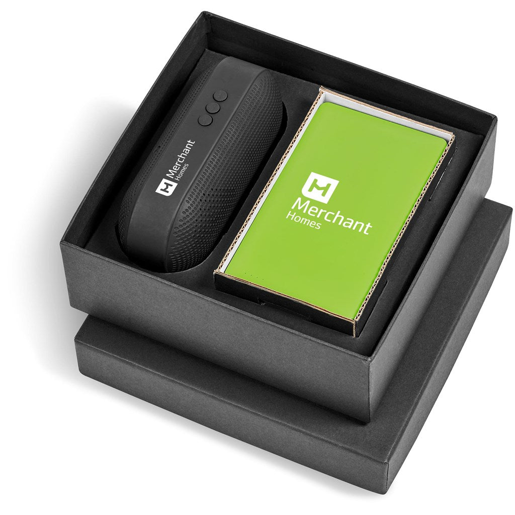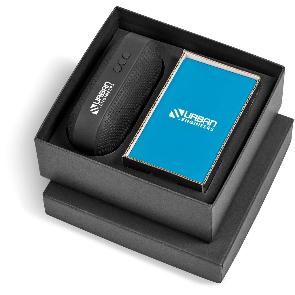 This neatly packaged gift set brings you a black Bluetooth speaker combined with a 4000mAh power bank in a choice of colours.