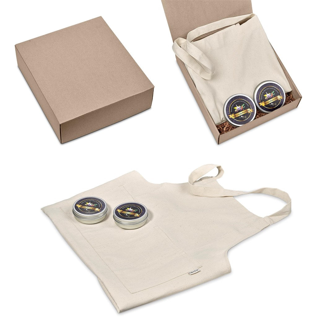 An Experienced and well-known spice company in South Africa, 'The Cheff' has created a perfect blend of herbs and spices to excite and delight your taste buds.  Add to chicken or meat, to bring out an authentic South African braai flavour. Team these spices with our natural cotton Gohan apron presented in a natural box with filler to create a perfect braai master gift.