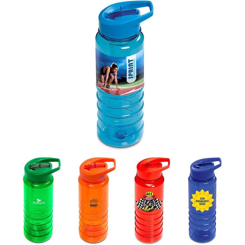6 fun colours to choose from. Tritan durable & safe bottle. Matching flip top spout with carrying handling lid. Screw open lid for easy cleaning & re-filling. Groove design.
