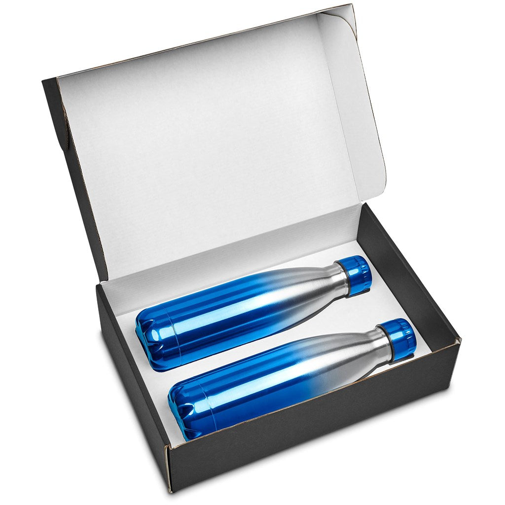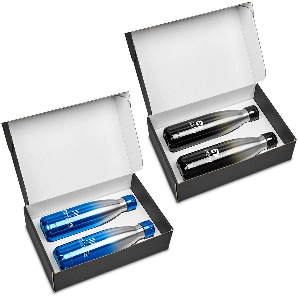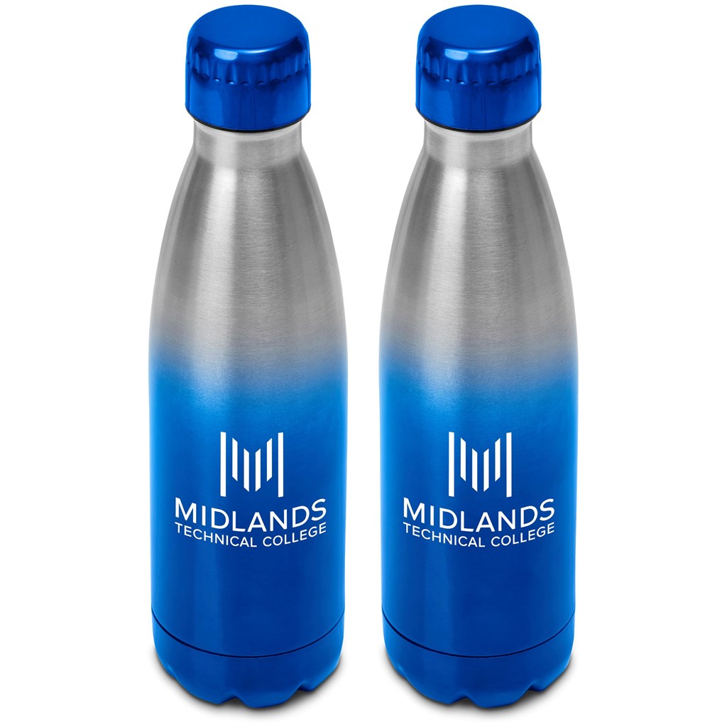 The double-wall vacuum construction of these 500ml bottles will keep liquids hot or cold for hours. The gradient finish sets these bottles aside from others, and provides an attractive background for the branding of your logo.