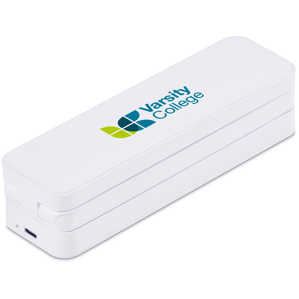 Serving as both a desk lamp and a phone stand, this handy item folds flat, making it easy to take with you on your travels. It offers considerable branding space so you can opt for a large, full colour digital print.
