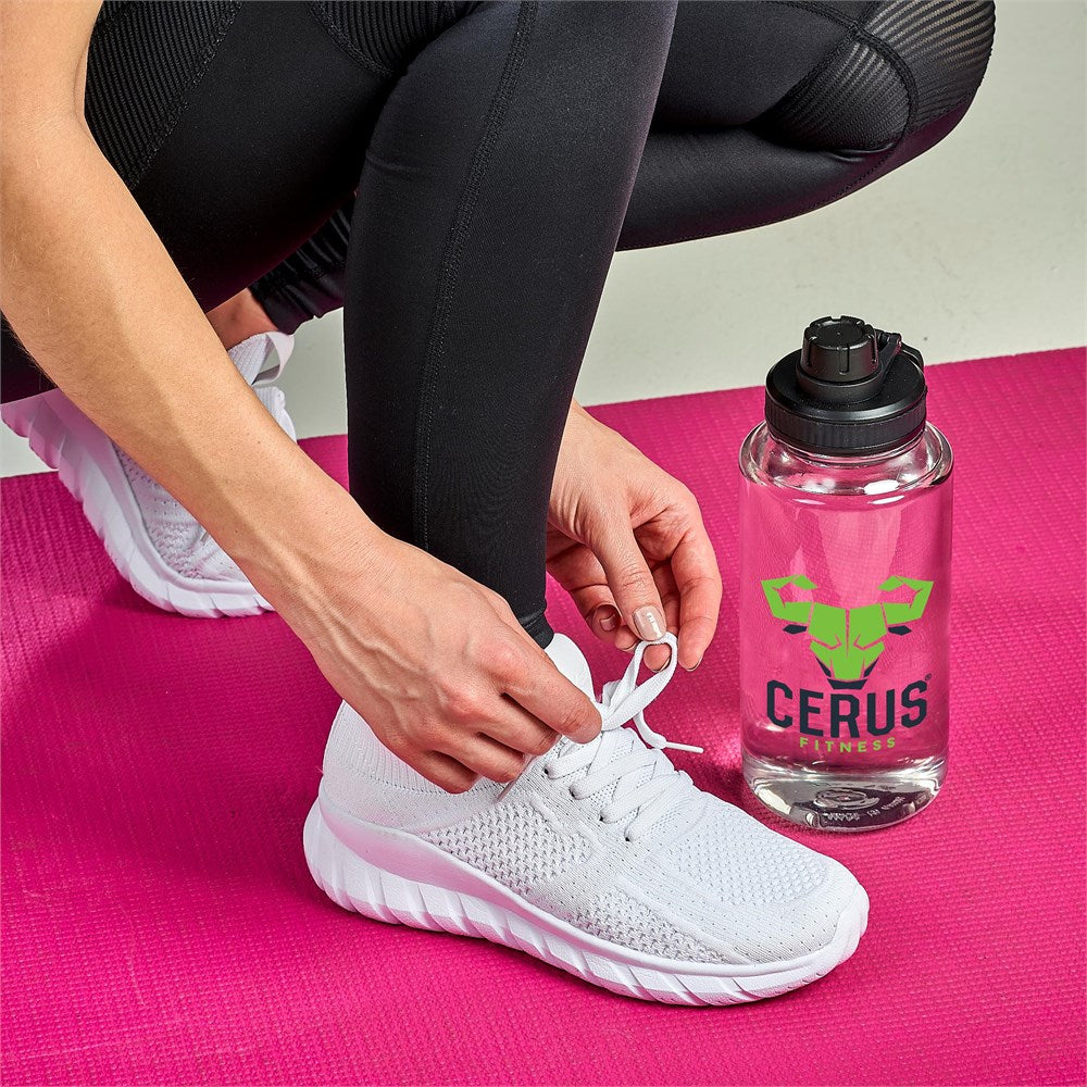 Ensure you get your recommended daily water intake by filling this jumbo water bottle twice a day. The wide bottle mouth makes it easy to add ice or fruit to your water, while the top lid can be unscrewed for drinking. The Flexi-hinged loop makes this watertight bottle easy to carry around with you.